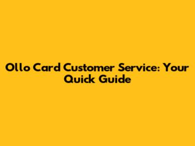 Ollo Card Customer Service: Your Quick Guide