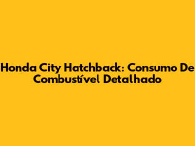 Honda City Hatchback: Consumo De Combustível Detalhado