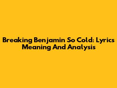 Breaking Benjamin So Cold: Lyrics Meaning And Analysis