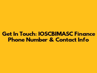 Get In Touch: IOSCBIMASC Finance Phone Number & Contact Info