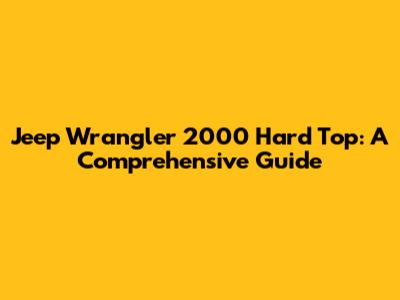 Jeep Wrangler 2000 Hard Top: A Comprehensive Guide