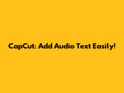 CapCut: Add Audio Text Easily!