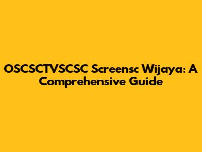 OSCSCTVSCSC Screensc Wijaya: A Comprehensive Guide
