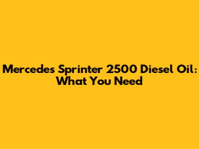 Mercedes Sprinter 2500 Diesel Oil: What You Need