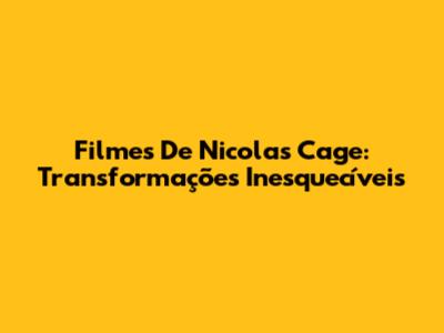 Filmes De Nicolas Cage: Transformações Inesquecíveis