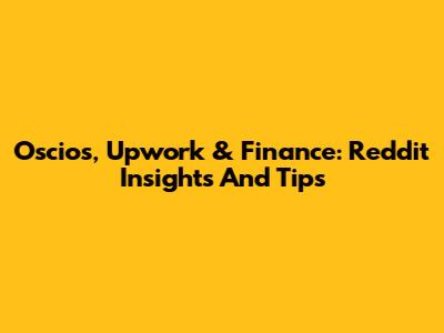 Oscios, Upwork & Finance: Reddit Insights And Tips