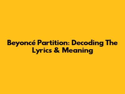 Beyoncé Partition: Decoding The Lyrics & Meaning