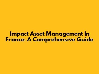 Impact Asset Management In France: A Comprehensive Guide