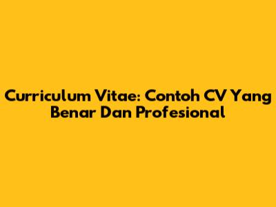 Curriculum Vitae: Contoh CV Yang Benar Dan Profesional