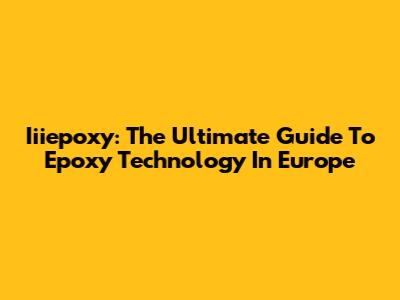 Iiiepoxy: The Ultimate Guide To Epoxy Technology In Europe