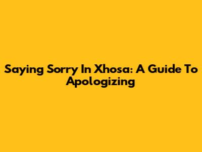 Saying Sorry In Xhosa: A Guide To Apologizing