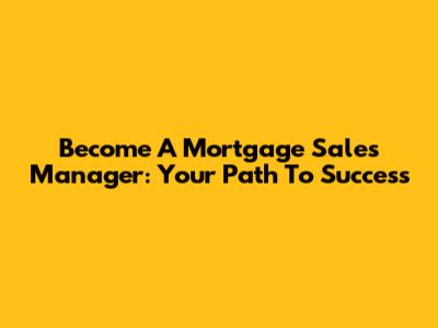 Become A Mortgage Sales Manager: Your Path To Success