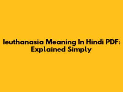Ieuthanasia Meaning In Hindi PDF: Explained Simply