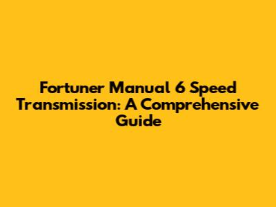 Understanding the Fortuner Manual 6-Speed Transmission