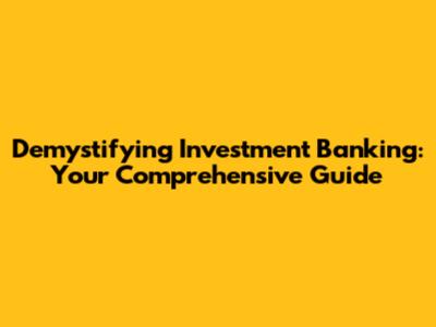 Demystifying Investment Banking: Your Comprehensive Guide