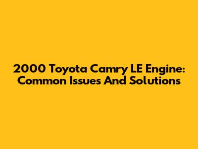 2000 Toyota Camry LE Engine: Common Issues And Solutions