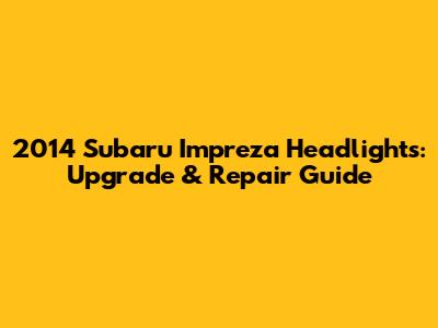 2014 Subaru Impreza Headlights: Upgrade & Repair Guide