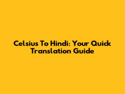 Celsius To Hindi: Your Quick Translation Guide