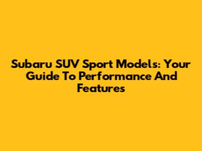 Subaru SUV Sport Models: Your Guide To Performance And Features