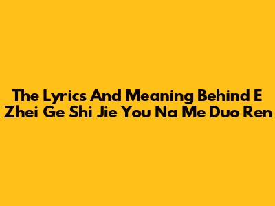 The Lyrics And Meaning Behind "E Zhei Ge Shi Jie You Na Me Duo Ren"