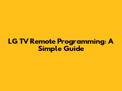 LG TV Remote Programming: A Simple Guide