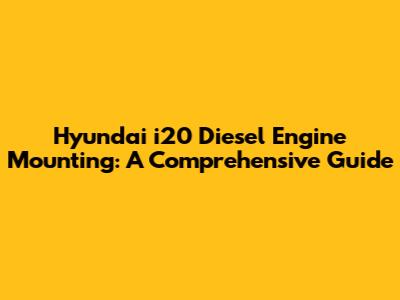 Hey guys! Ever wondered about the Hyundai i20 diesel engine mounting and why it's so important? Well, you're in the right place! We're going to dive deep into this topic, covering everything from the basics to troubleshooting common issues. Engine mounting, or engine mounts, play a crucial role in the overall performance and longevity of your car. They're like the unsung heroes, silently working to keep everything running smoothly. Let's get started, shall we?