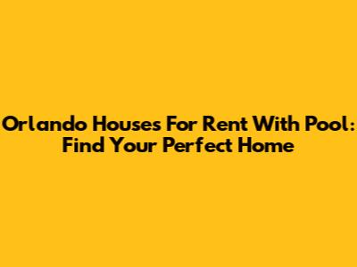 Orlando Houses For Rent With Pool: Find Your Perfect Home