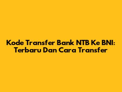 Kode Transfer Bank NTB Ke BNI: Terbaru Dan Cara Transfer