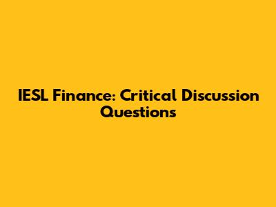IESL Finance: Critical Discussion Questions