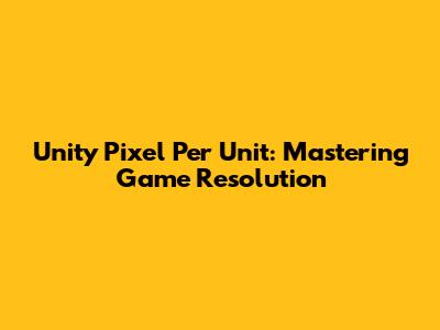 Unity Pixel Per Unit: Mastering Game Resolution