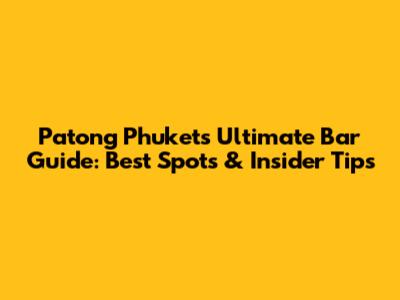 Patong Phuket's Ultimate Bar Guide: Best Spots & Insider Tips