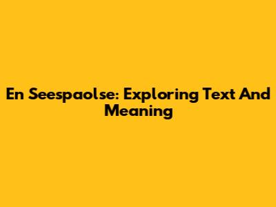 En Seespaolse: Exploring Text And Meaning