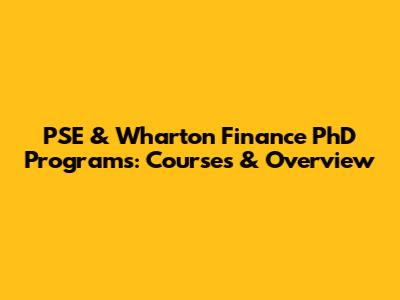 PSE & Wharton Finance PhD Programs: Courses & Overview