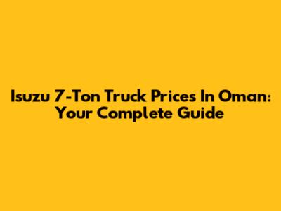 Isuzu 7-Ton Truck Prices In Oman: Your Complete Guide