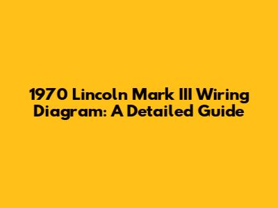 1970 Lincoln Mark III Wiring Diagram: A Detailed Guide
