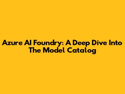 Azure AI Foundry: A Deep Dive Into The Model Catalog