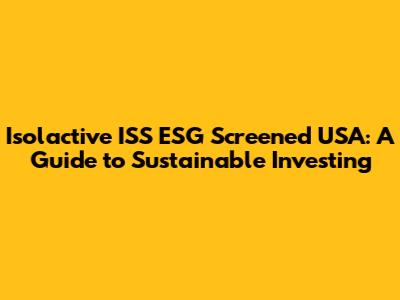 Hey everyone! Today, we're diving deep into the world of sustainable investing with a focus on a fascinating area: Isolactive ISS ESG Screened USA. If you're like me, you're probably hearing more and more about ESG investing, but maybe you're not entirely sure what it's all about. Well, worry not, because we're going to break it all down, making it easy to understand and hopefully sparking your interest in this awesome approach to investing. We'll explore what it means to be 'screened' by a company like ISS (Institutional Shareholder Services), how it relates to the US market, and why it's becoming such a big deal. Get ready to learn how you can potentially align your financial goals with your values, all while making a positive impact!