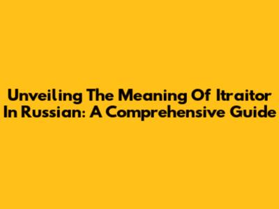 Unveiling The Meaning Of "Itraitor" In Russian: A Comprehensive Guide
