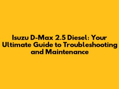 Understanding Your Isuzu D-Max 2.5 Diesel