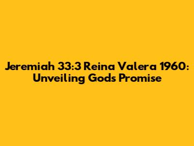 Hey guys! Today, we're diving deep into one of the most powerful and comforting verses in the Bible: Jeremiah 33:3, as it appears in the Reina Valera 1960 translation. This verse is like a beacon of hope, a direct line to divine guidance, and a reminder of God's unwavering presence. So, let's unpack it, explore its significance, and see how it can impact our lives today. Get ready for a journey of faith and discovery!