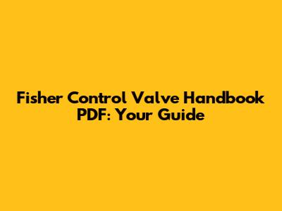 Fisher Control Valve Handbook PDF: Your Guide
