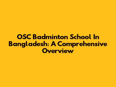 OSC Badminton School In Bangladesh: A Comprehensive Overview