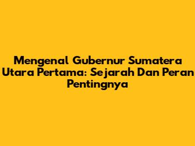 Mengenal Gubernur Sumatera Utara Pertama: Sejarah Dan Peran Pentingnya