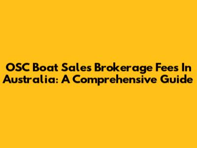 OSC Boat Sales Brokerage Fees In Australia: A Comprehensive Guide