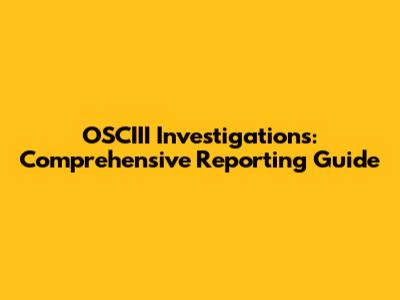 OSCIII Investigations: Comprehensive Reporting Guide