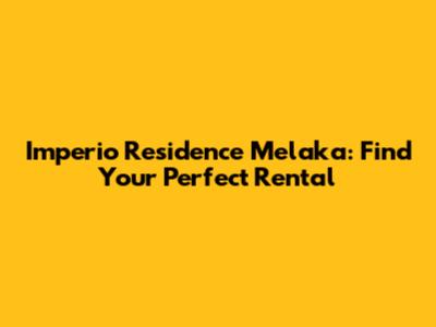 Imperio Residence Melaka: Find Your Perfect Rental