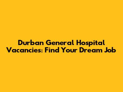 Durban General Hospital Vacancies: Find Your Dream Job