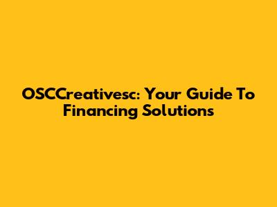 OSCCreativesc: Your Guide To Financing Solutions