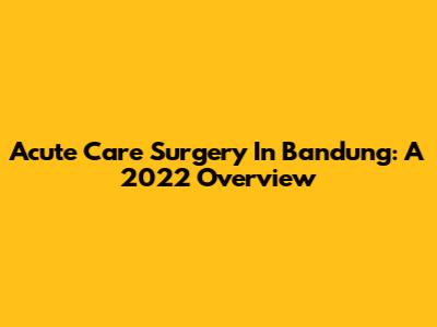 Acute Care Surgery In Bandung: A 2022 Overview