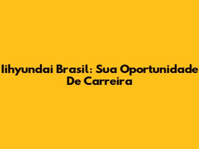 Iihyundai Brasil: Sua Oportunidade De Carreira